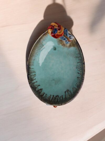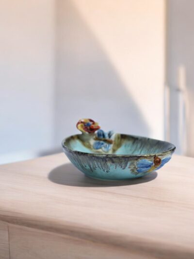 Introducing the Azure Bloom Dish, a stunning piece that brings a touch of elegance to any setting. Crafted with meticulous attention to detail, this dish features a mesmerizing azure hue reminiscent of tranquil waters, making it a perfect centerpiece for your dining table or a beautiful accent on a shelf.