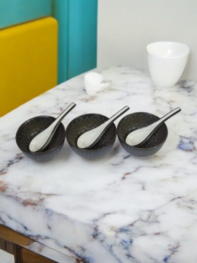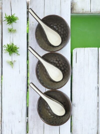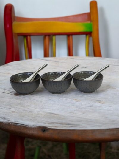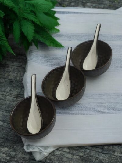 Bring warmth and sophistication to your dining experience with the Earth Ember Soup Bowl Set. Handcrafted from sustainable ceramics, this lead-free set of four earthy brown bowls with matching spoons embodies timeless rustic charm. Its natural tones and artisanal finish add a luxurious touch to your lifestyle while supporting eco-friendly living.