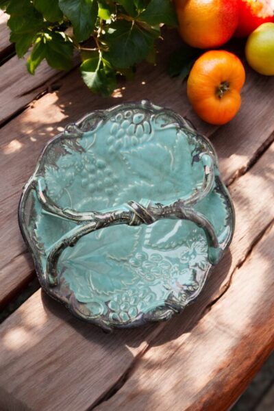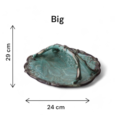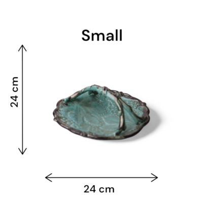 The Verdant Empress Platter from Serakriti Ceramics is a luxurious basket platter, inspired by vintage elegance and the grandeur of historical designs. Handcrafted and intricately glazed, this lead-free, sustainable ceramic piece elevates your dining experience with its rich textures and regal charm, making it a perfect blend of artistry and eco-conscious luxury.